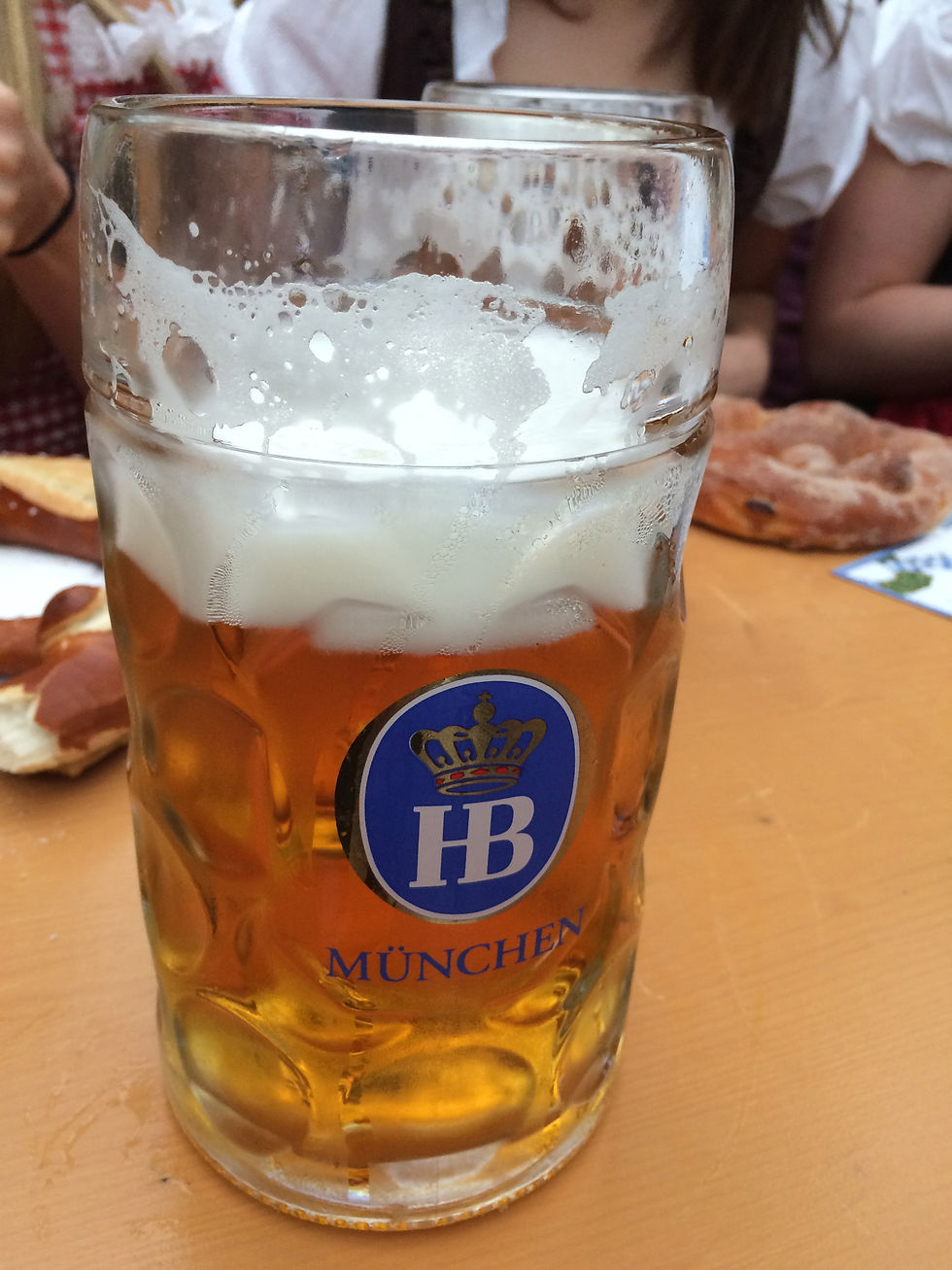 Immediatly waitresses were around, and I had my first beer stein at Oktoberfest. I kept saying "Skol" instead of "Prost" whenever someone cheered with me, and I always got the strangest look. For those who do not know, "Skol" is cheers in Danish and "Prost" is cheers in German. Regardless, everyone was in good spirits, and I spent hours in the tent amongst the people and music.